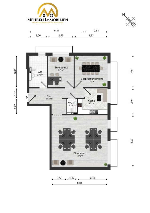 Die energieeffiziente Gebäudetechnik sorgt für niedrige Betriebskosten und ein angenehmes Raumklima. Durch die klare Architektur und die barrierearme Lage im Erdgeschoss eignet sich die Einheit hervorragend für Unternehmen mit Kundenverkehr oder repräsentativem Anspruch.