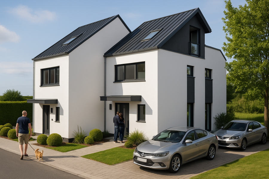 Diese Doppelhaushälfte überzeugt durch ihre zeitgemäße Architektur und klare Linienführung. Auf einer Wohnfläche von ca. 108 m² bietet das Haus ausreichend Platz für eine Familie. Das zweigeschossige Gebäude mit ausgebautem Dachgeschoss und großer Dachterrasse verfügt über insgesamt 4 Zimmer, darunter 3 Schlafzimmer sowie ein Badezimmer. Ein PKW-Stellplatz gehört ebenfalls zur Immobilie, die auf einem ca. 193 m² großen Grundstück liegt.
