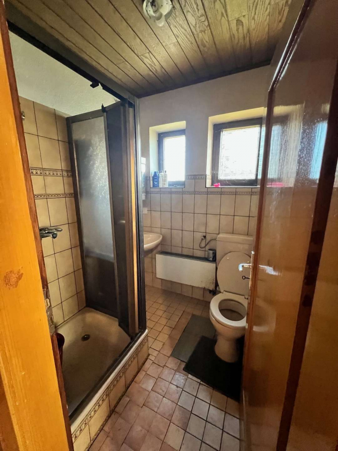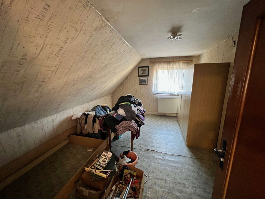 Das Haus verfügt über 4 Zimmer und 2 Badezimmer, verteilt auf 2 Etagen plus Dachgeschoss. Die Ausstattung ist derzeit einfach gehalten, bietet aber großes Potenzial für Individualisierung und Modernisierung. Die Zentralheizung, betrieben mit Öl, sorgt für eine angenehme Wohnatmosphäre.