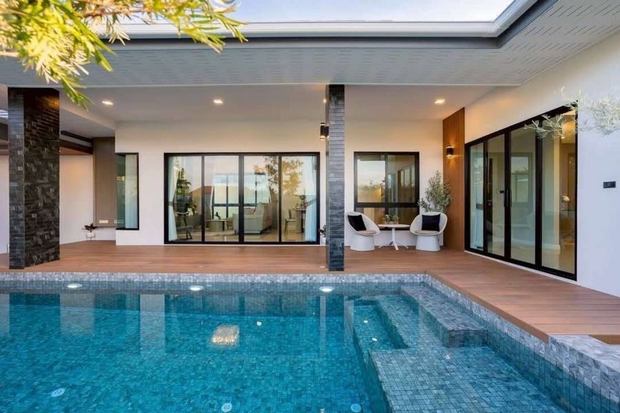 Entdecken Sie modernes tropisches Wohnen mit dieser brandneuen Villa mit 3 Schlafzimmern im ruhigen Viertel Hin Lek Fai von Hua Hin – nur 300 Meter von 7-Eleven entfernt und in der Nähe des Stadtzentrums!