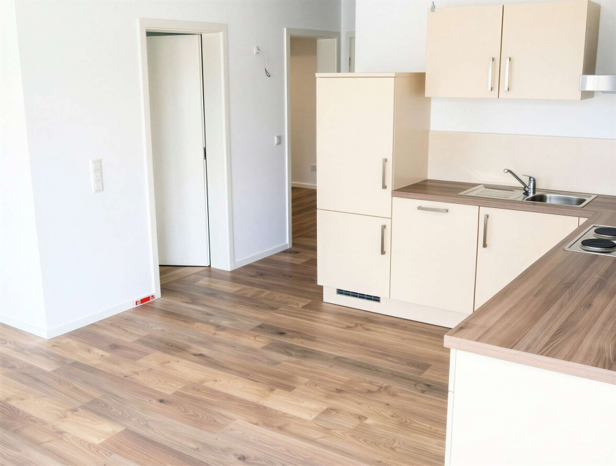 Auf rund 86 m² Wohnfläche erwartet Sie eine durchdachte Raumaufteilung mit offenem Wohn- und Essbereich, zwei Schlafzimmern sowie einer großzügigen Terrasse mit ca. 18 m², die zum Entspannen einlädt. Die Wohnung ist mit einem hochwertigen Designboden in moderner Holzoptik (Vinyl) ausgestattet, der frei von Weichmachern und Lösungsmitteln ist und dadurch sowohl langlebig als auch besonders wohngesund ist.